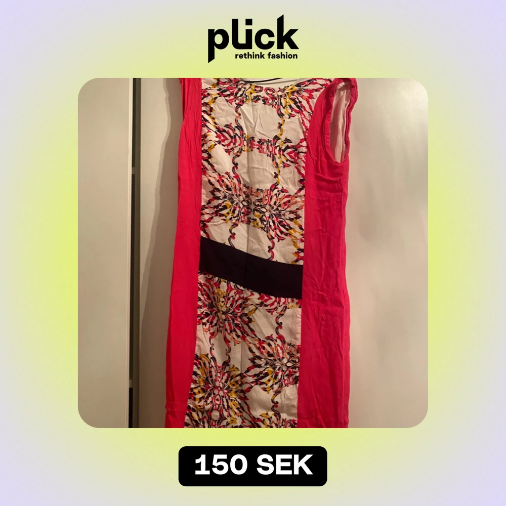 Säljer en superfin ärmlös klänning med ett färgglatt blommönster i rosa, svart och gult. Klänningen har en svart midjedetalj som ger en snygg siluett. Perfekt för sommarens fester eller en dag på stan. Materialet känns lätt och bekvämt. Passa på att köpa denna unika klänning!
