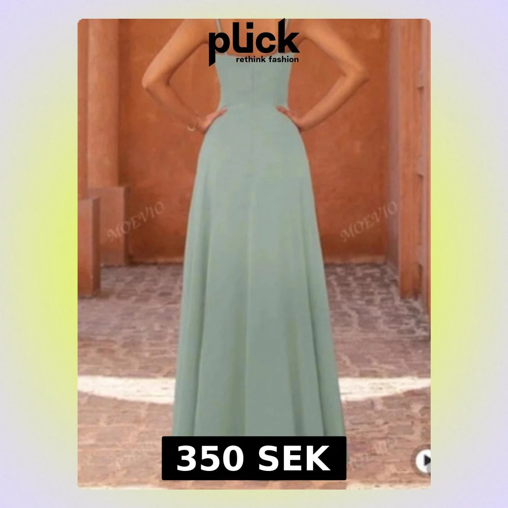 Supersnygg ljusgrön långklänning från MOEVIO med smala axelband och en elegant slits på sidan. Klänningen har en draperad urringning och sitter riktigt fint med en flowy passform. Perfekt för dig som vill ha en stilren och trendig look.