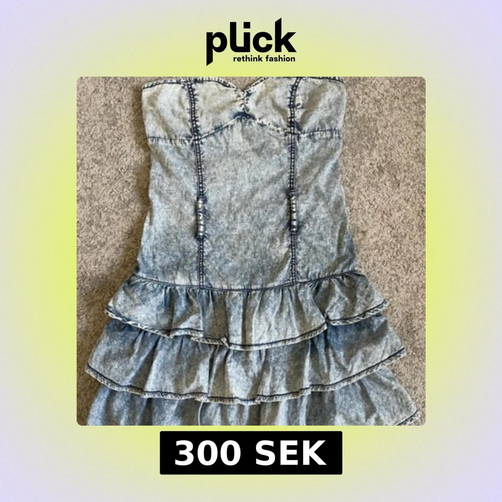 Säljer en snygg jeansklänning med volanger och smock i ryggen. Klänningen är ärmlös och har en figurnära passform