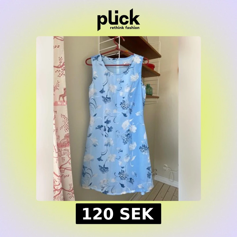 söt blå klänning med blommigt mönster. Strl S. Fint skick! Se även mina andra annonser, 3 för 2 på allt! ✨