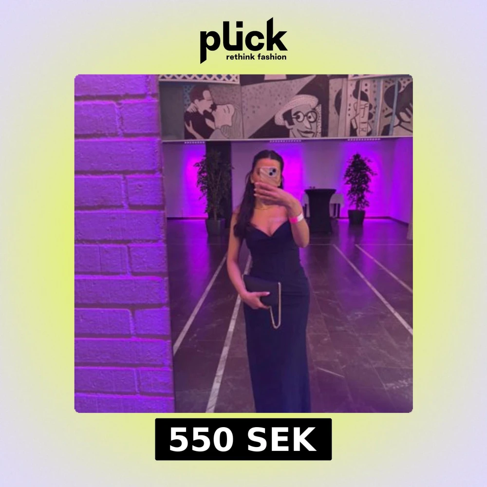 Säljer en marinblå långklänning med sweetheart-urringning och smala axelband. Klänningen har en snygg slits på ena sidan och figurnära passform som framhäver siluetten. Perfekt för bal eller student! Materialet känns mjukt och följsamt.