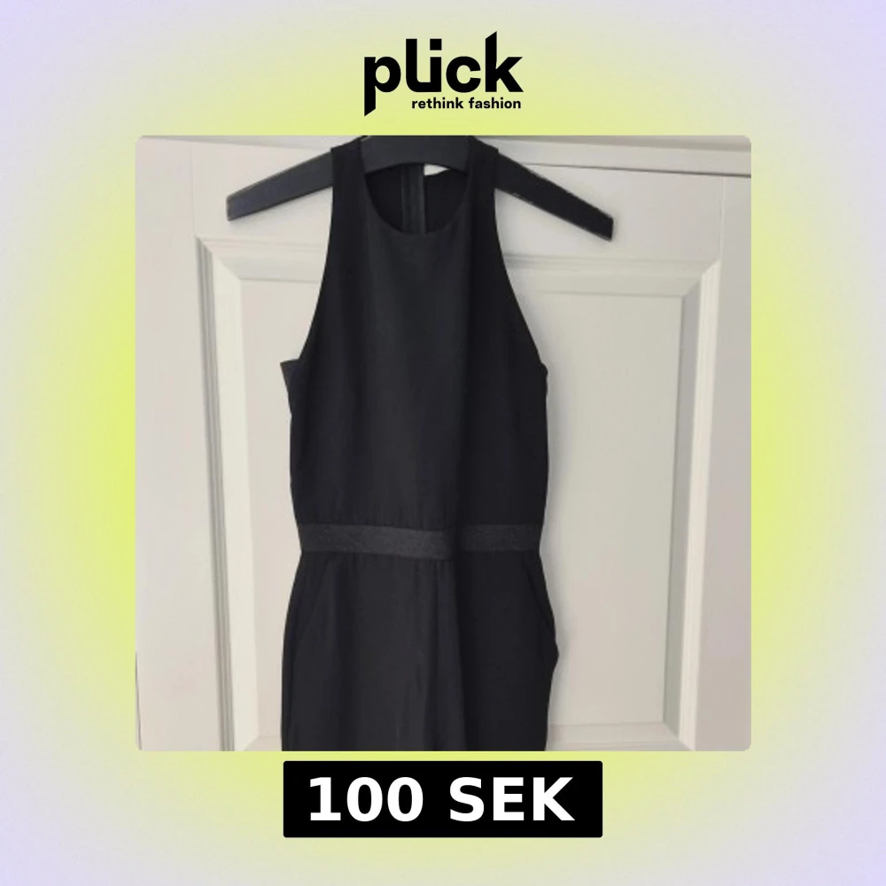 Säljer en svart onepiece med ärmlös design och breda resårdetaljer i midjan och på ryggen. Den har en stilren och minimalistisk look med öppen rygg och rund halsringning. Perfekt för dig som gillar enkel men snygg stil. Känns mer som stl 36 än 38