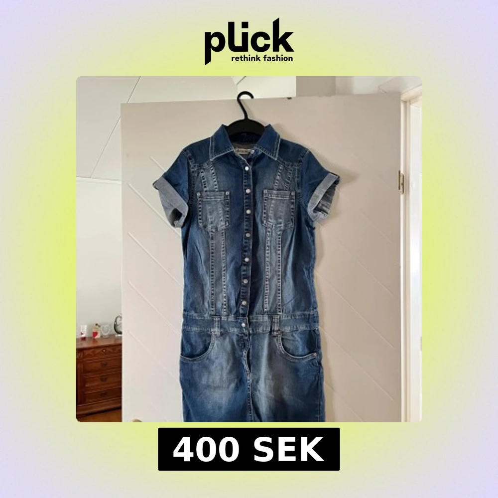 Snygg jeansklänning från Denim 36 med korta ärmar, knappar hela vägen framtill och två bröstfickor. Klassisk skjortkrage och coola sömdetaljer. Perfekt för dig som gillar denim och vill ha en avslappnad men trendig look.