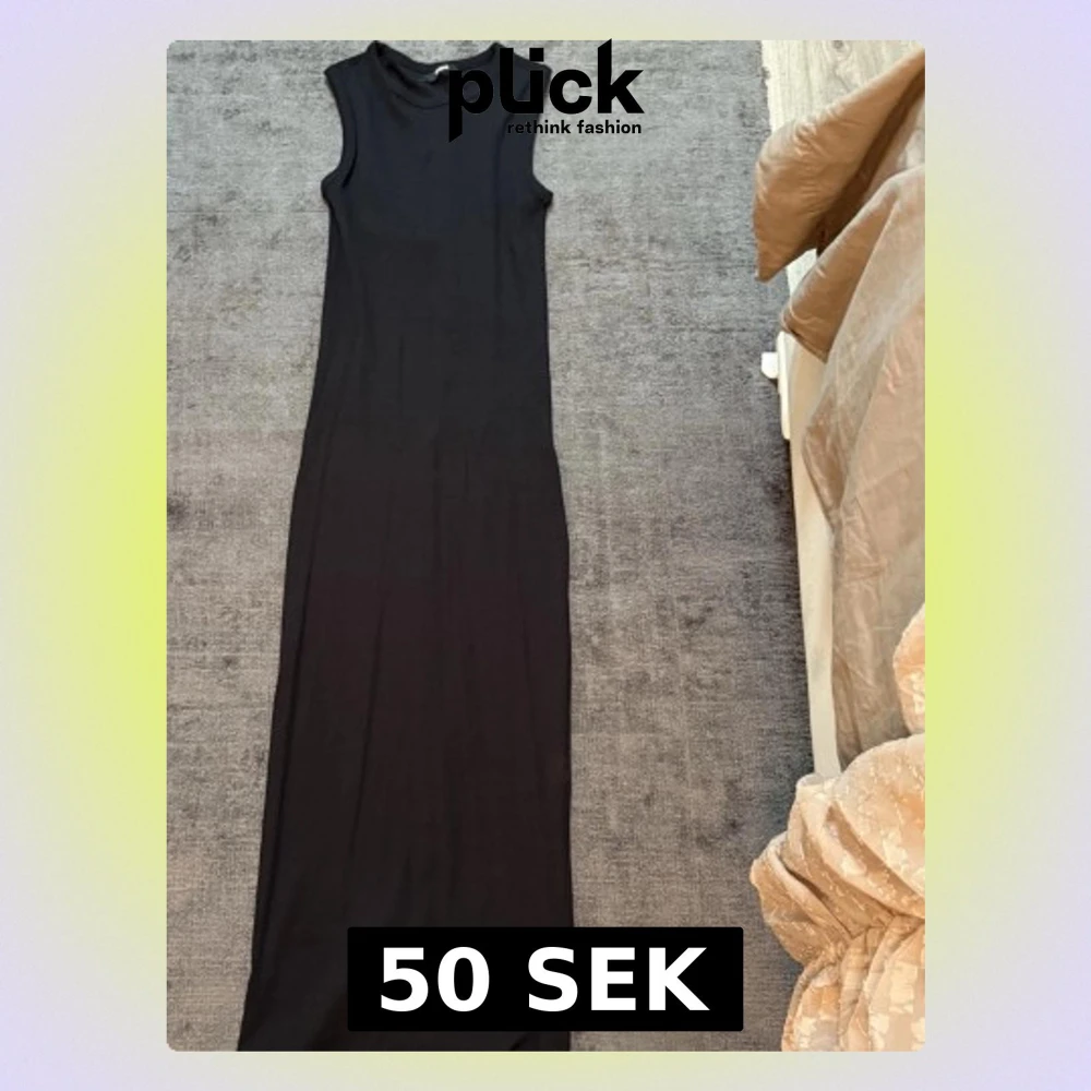 Ribbad svart klänning från bikbok, med slits baktill vid benen