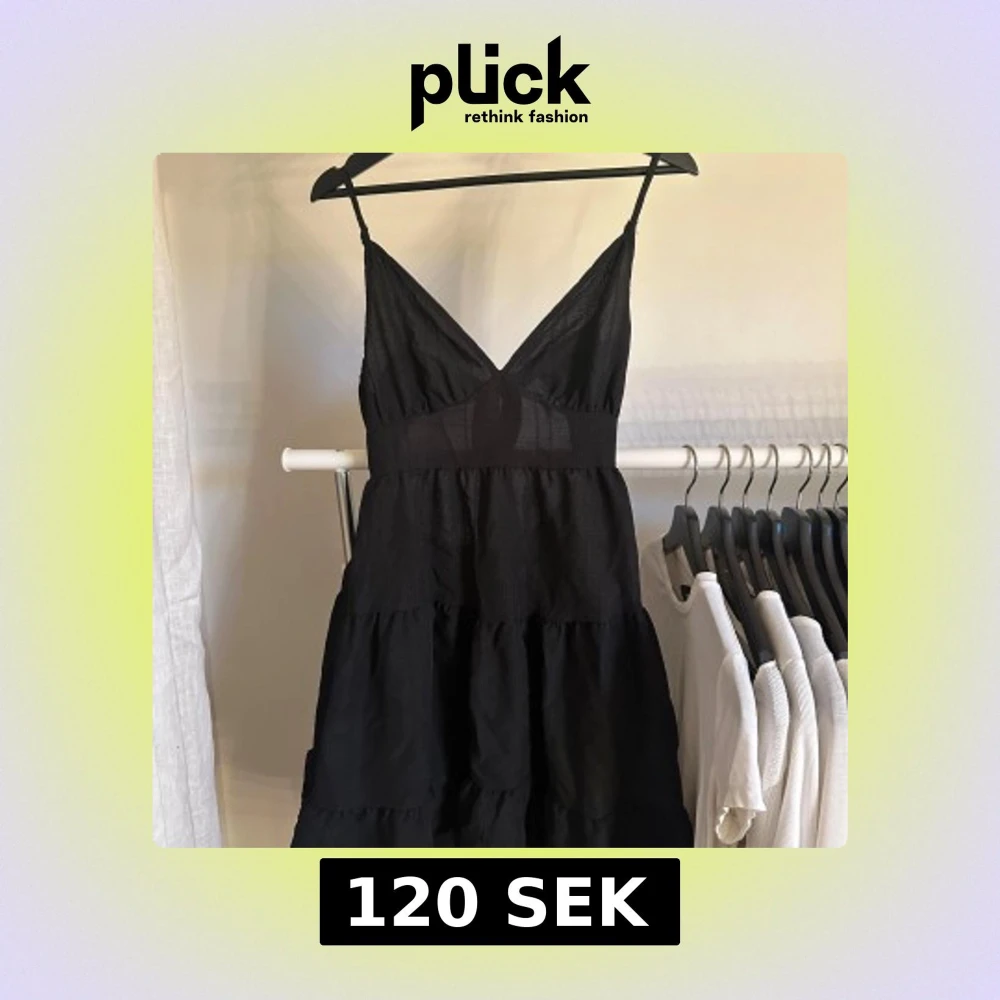 Svart kort sommarklänning med knytning i ryggen. Aldrig använd då jag inte tyckte att den passade mig.