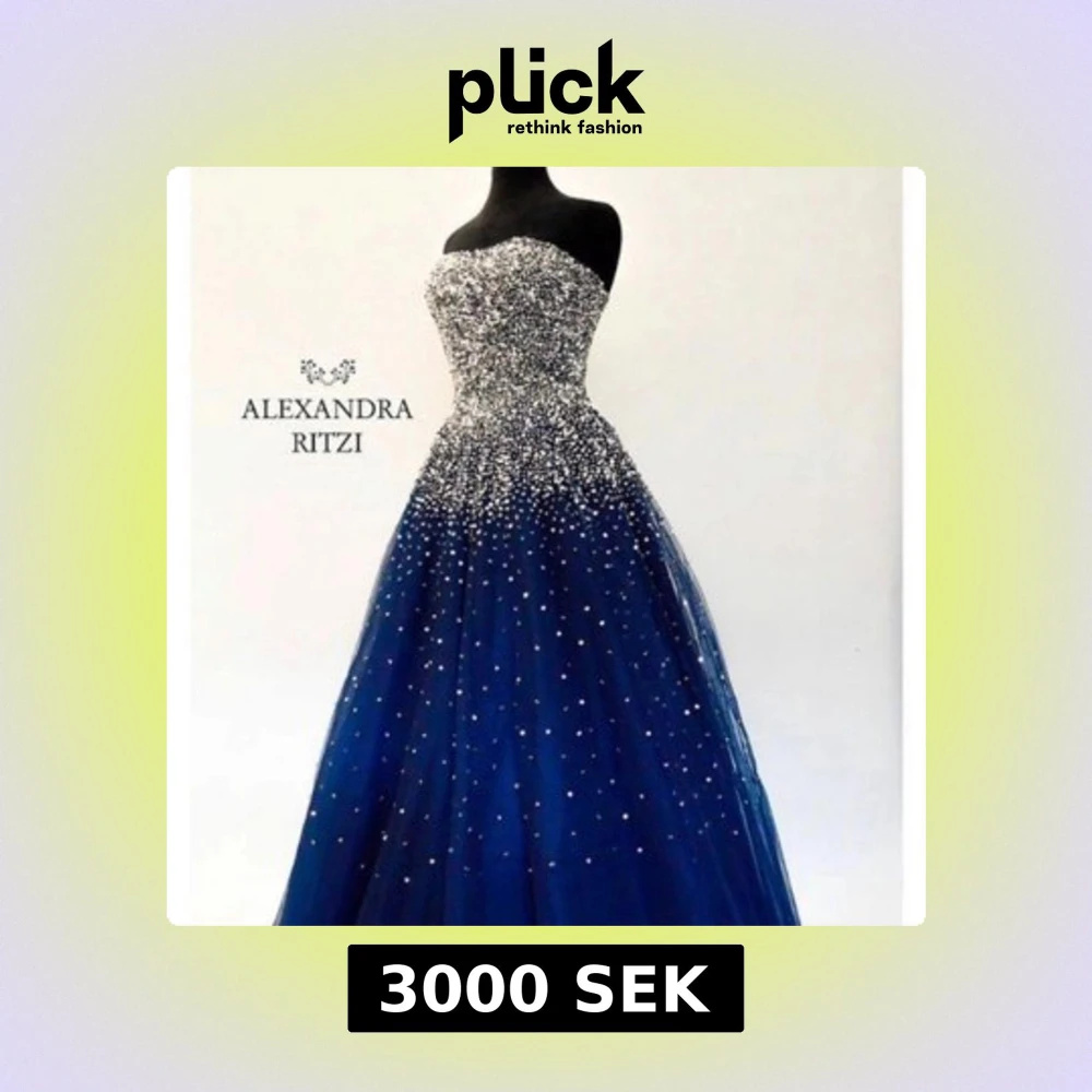 Säljer en fantastisk blå axelbandslös klänning från Alexandra Ritzi. Klänningen är dekorerad med glittriga detaljer som ger en magisk känsla. Perfekt för en speciell kväll!