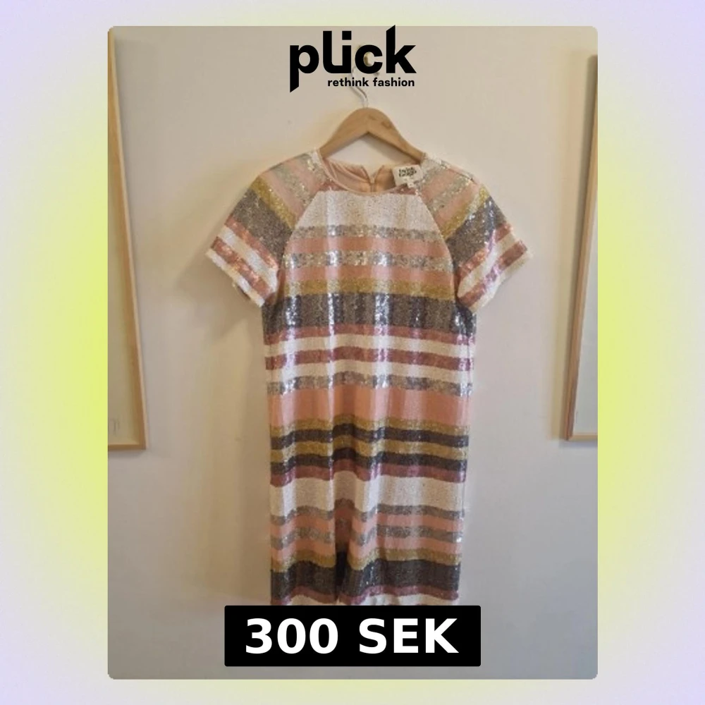 Glittrig kortklänning från Twist & Tango med färgglada ränder i rosa, guld, silver och vitt. Klänningen har korta ärmar, rund halsringning och är täckt av paljetter för en extra festlig look. Perfekt för dig som vill sticka ut.