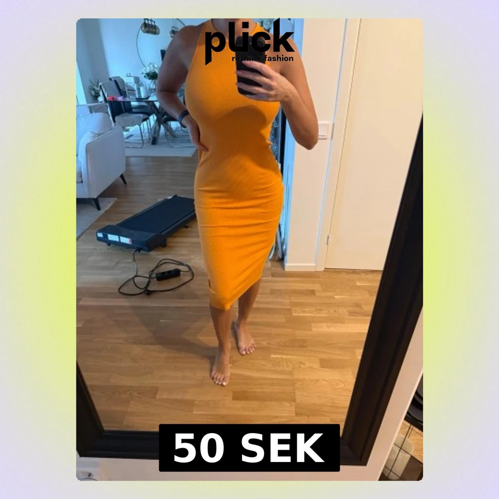 Säljer en snygg gul ribbad klänning med halterneck och korsade band i ryggen. Klänningen är figurnära, ärmlös och har en slits bak för extra rörelsefrihet. Perfekt för dig som vill sticka ut med färg och stil i sommar!