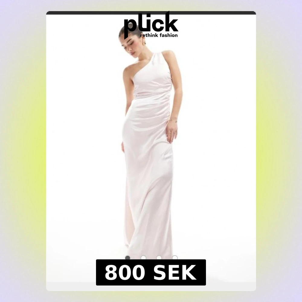 Elegant ljus långklänning med oneshoulder-design och draperad effekt över kroppen. Klänningen har en slank passform och är tillverkad i ett glansigt material som ger en lyxig känsla. Perfekt för balen eller bröllop. Köpte den som förslag till balklänning men valde en annan till slut. Hoppas den kommer till nytta för någon annan. Slutsåld på asos och vet inte om den går att köpa någon annanstans så passa på🥰