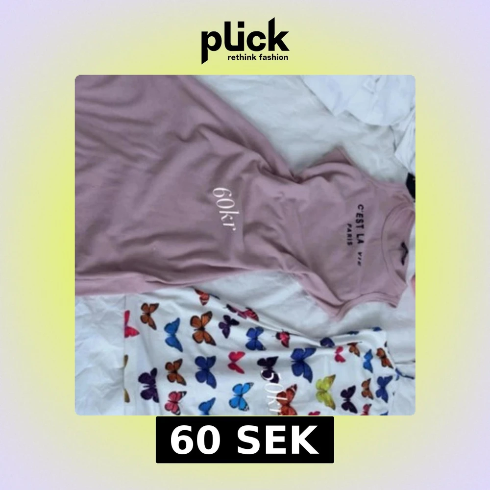 Säljer tre snygga klänningar . Ett rosa med text, ett vitt med färg fjärilar och ett grönt. Perfekta för sommaren. Alla tre ärmlösa och i mjukt material.
