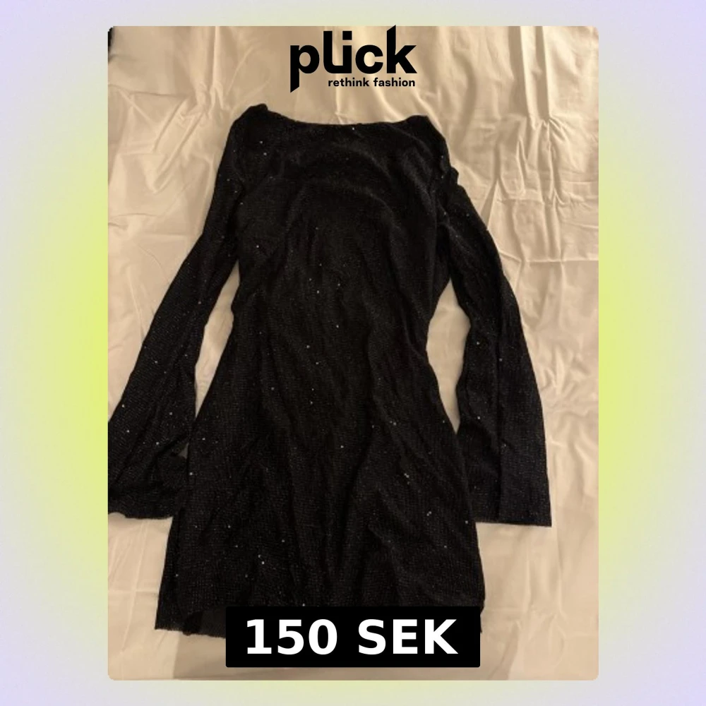 Supersnygg svart kortklänning från parthea med glittriga detaljer och långärmad design. Klänningen har öppen rygg med snörning och ett lätt skimrande tyg som ger extra wow-effekt. Perfekt för dig som vill sticka ut och känna dig extra glam.