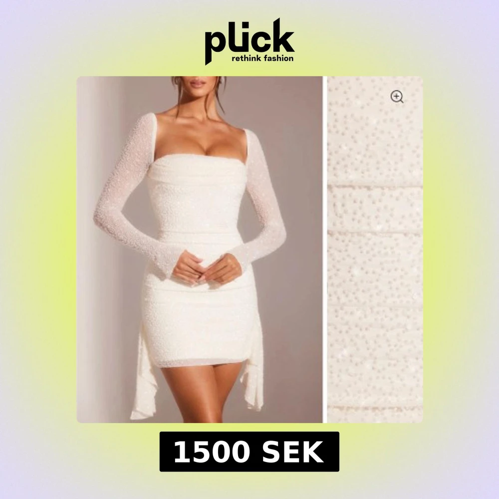 Superfin vit kortklänning med glittrigt material och långa ärmar. Har inte kommit till användning då den inte passade mig. Passar s/xs och priset kan diskuteras.
