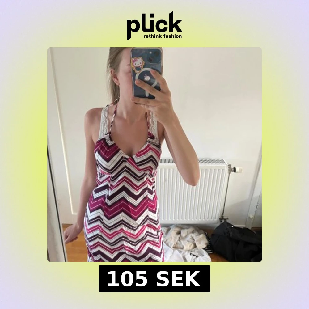 Säljer en snygg kortklänning med halterneck och v-ringning. Super fin nu till sommaren. Det är mina bh band som hänger ner på bild 3&4💕