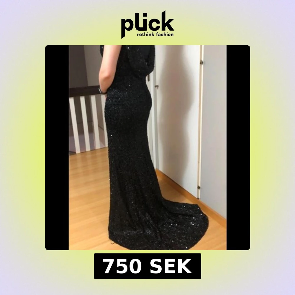 Elegant svart långklänning med glittrande detaljer. Klänningen har en figurnära passform och en vacker drapering i ryggen. Perfekt för en glamorös kväll.