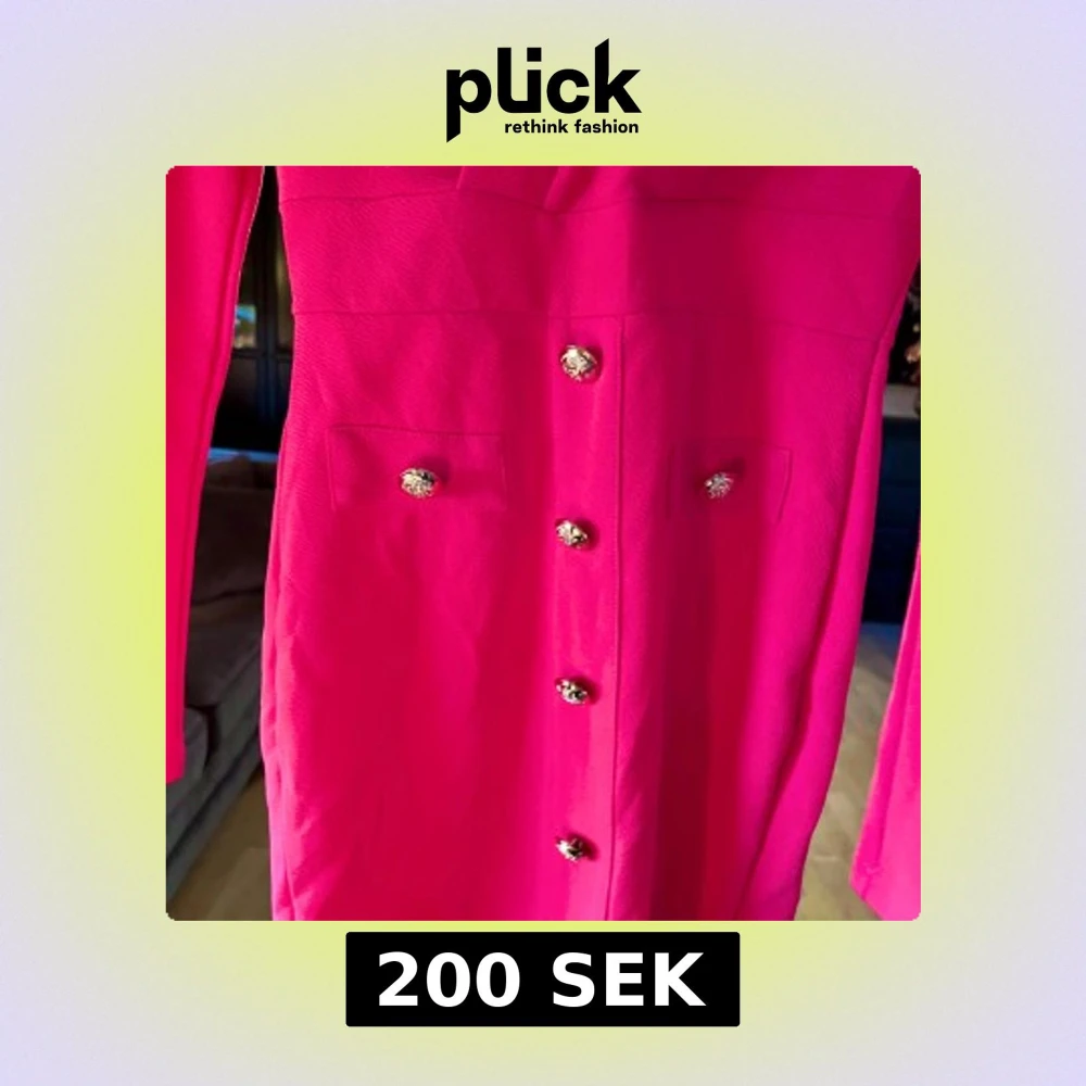 Säljer en knallrosa, fantastisk vacker klänning med v-ringning och guldknappar. Inte använd, då den tyvärr blev för trång för mig. 👗
