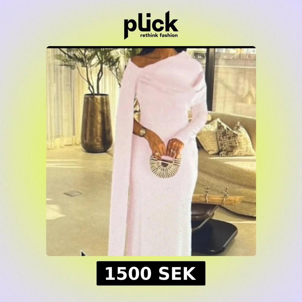 Säljer en elegant ljusrosa balklänning med oneshoulder-design och lång ärm på ena sidan. Klänningen har en stilren och modern siluett som ger en sofistikerad vibe. Perfekt för dig som vill sticka ut med en unik look.