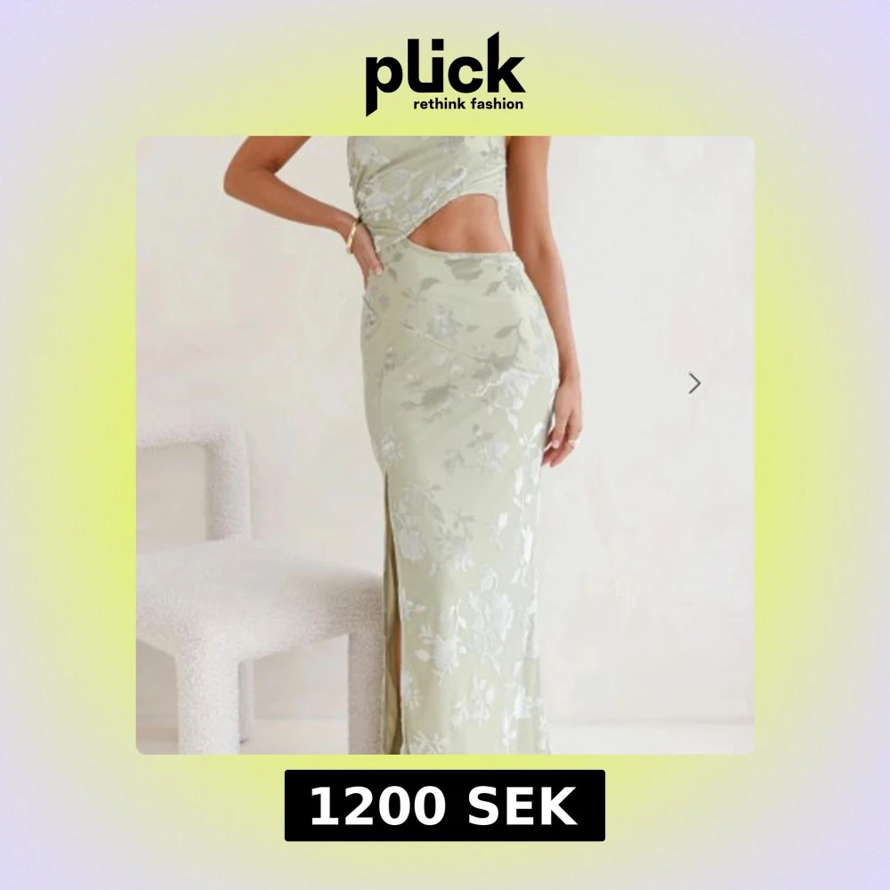 Jättefin klänning från Hello Molly! Helt ny med prislapp, aldrig använd!! Length from shoulder to hem of size S: 130cm. Chest: 34cm, Waist: 31cm, across front only of size S. Maxi dress. Lined, unlined sheer back. Model is a standard XS and is wearing size XS. True to size. Stretch. Cutout. One-shoulder. Velvet-like pattern. Print placement may vary. Side zipper. Cold hand wash only. Polyester/Spandex/Nylon.