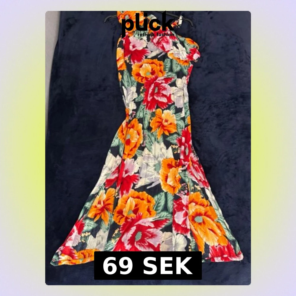 Färgstark långklänning med stora blommor i rött, orange, vitt och grönt. Klänningen har volangdetalj vid axeln. Perfekt för sommarens alla tillfällen. Storlek S.