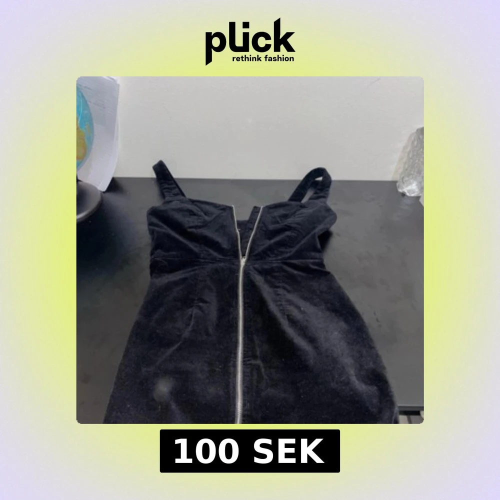 Snygg svart klänning i manchester med smala axelband och en markerad dragkedja framtill. Klänningen har en figurnära passform och är perfekt för dig som gillar en stilren look med lite edge.