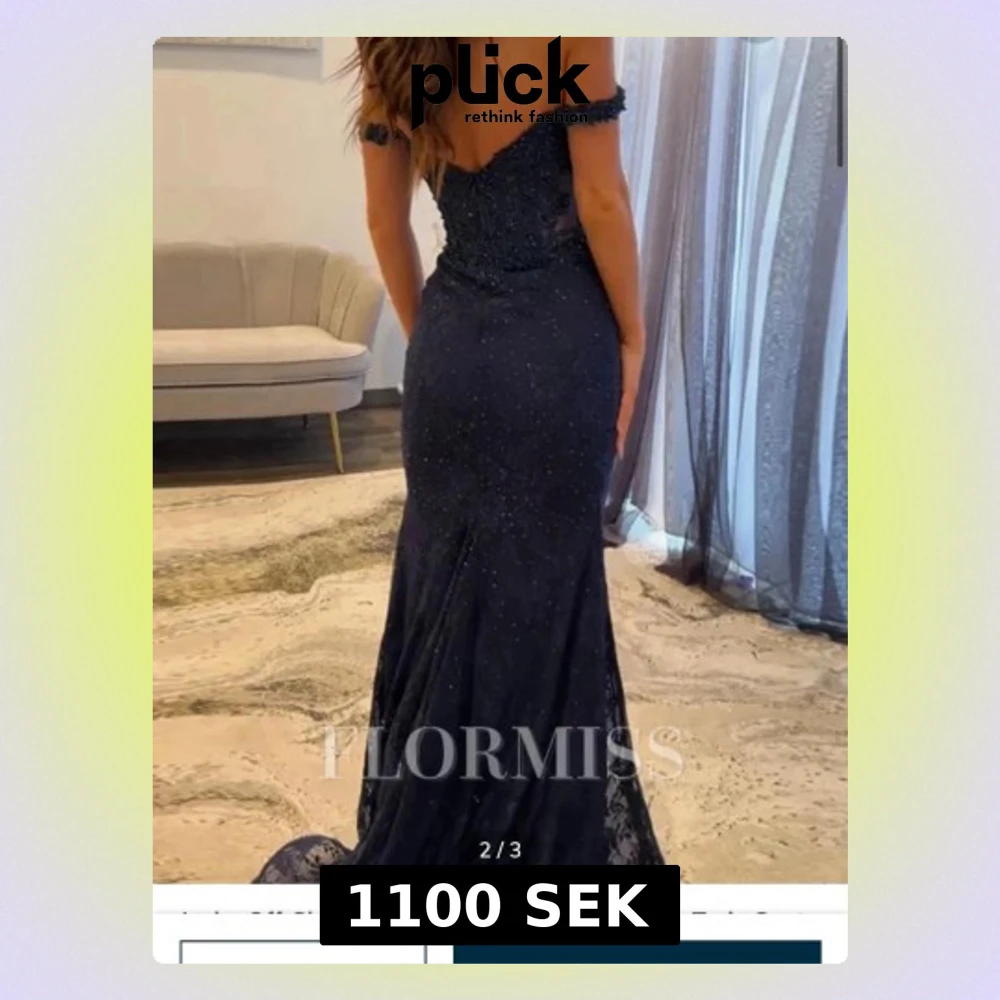 Säljer en marinblå långklänning från Flormiss med offshoulder och figurnära passform. Klänningen har spetsdetaljer, pärlor och glittriga inslag samt en v-ringad mesh framtill. Kjolen är utsvängd och har släp. Perfekt för bal eller festliga tillfällen.