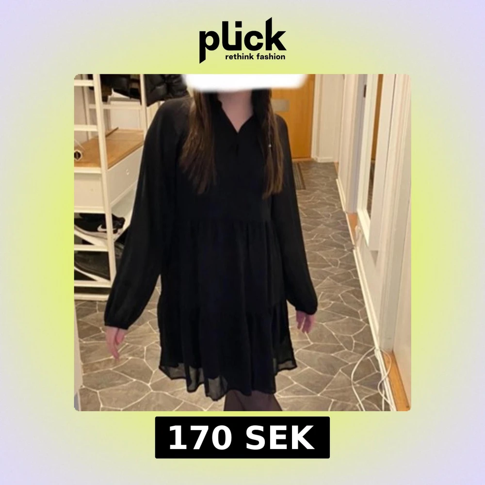 Snygg svart klänning från Object med lång ärm och v-ringad hals. Klänningen har en luftig passform och är perfekt för både vardag och festliga tillfällen. Den är använd endast en gång alltså i mycket bra skick. Pris kan diskuteras vid snabbt och smidigt köp:)
