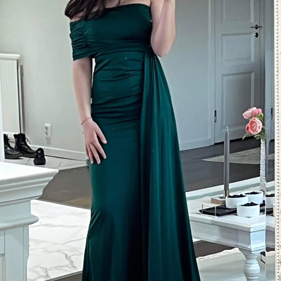 Mörkgrön långklänning med offshoulder