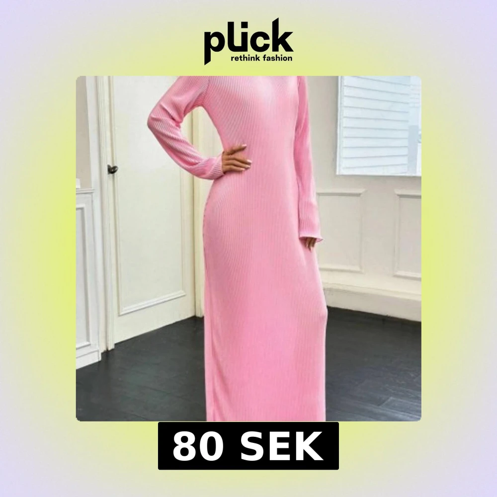 Snygg rosa långklänning med ribbad textur och långa ärmar. Perfekt för en stilren och bekväm look. Klänningen har en enkel och elegant design som passar till många tillfällen. Använd 1-2 gånger.