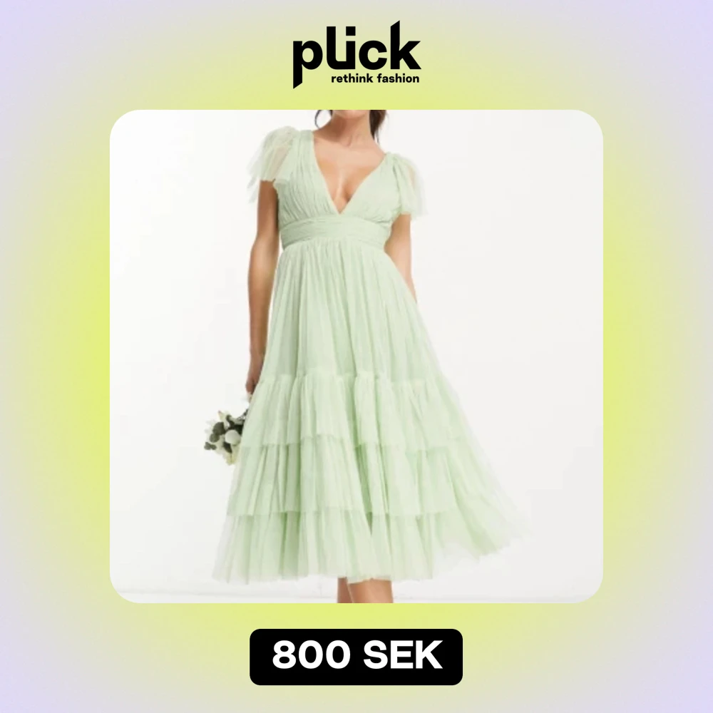 Jag säljer denna superfina tyllklänning i salviagrön färg som jag endast använt en gång! Den är i storlek EU36, dvs en S
