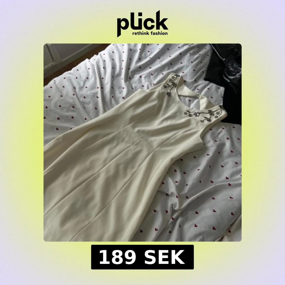 Supersnygg vit långklänning med ärmlös design och vackra paljettbroderier vid halsringningen. Klänningen har en klassisk, figurnära passform upptill och ett utsvängt fall. Perfekt för dig som vill sticka ut med en stilren look.