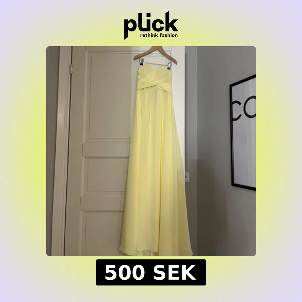 Gul axelbandslös långklänning