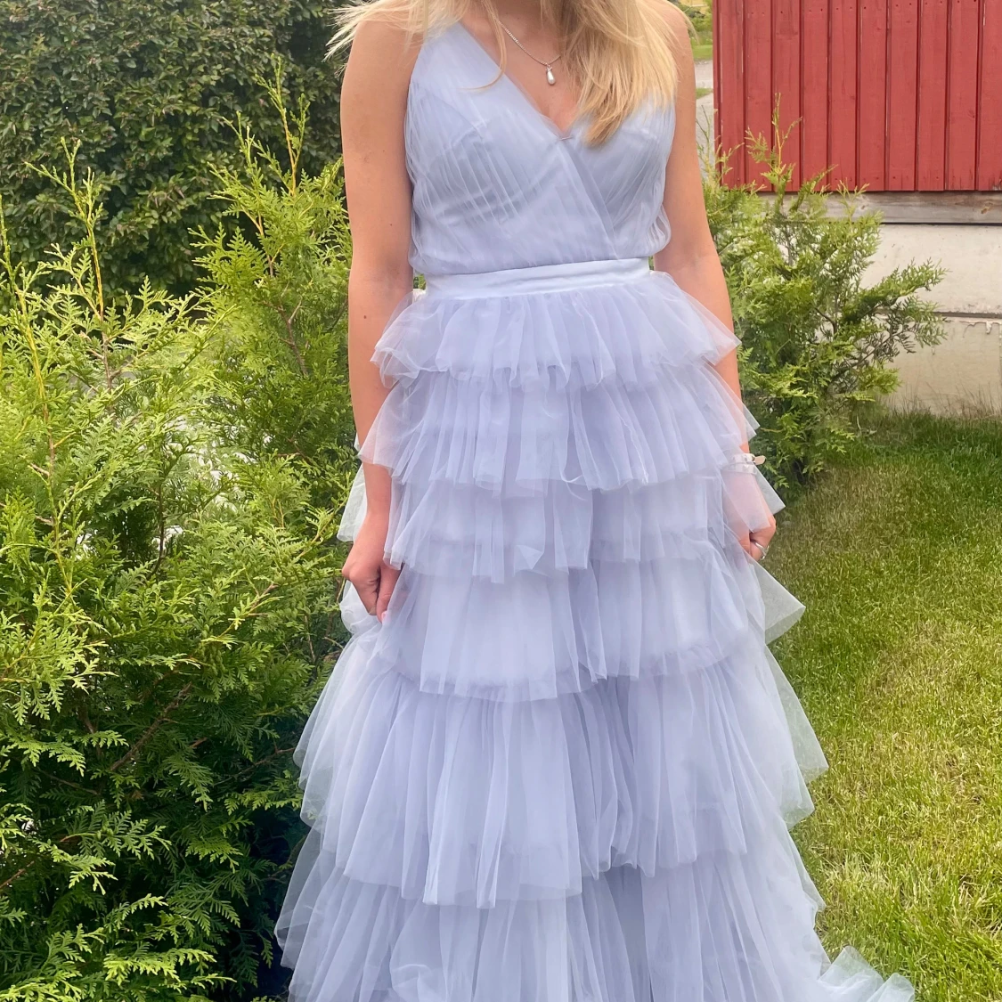 Säljer nu min balklänning från förra året! Endast använd en gång och mycket bra skick. Storlek är 36/38.