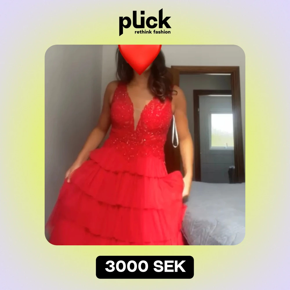 Säljer en fantastisk röd balklänning med spetsdetaljer och volanger. Klänningen har en djup v-ringning och är ärmlös, perfekt för festliga tillfällen. Den har en vacker, flerdelad kjol som ger en elegant look. Perfekt för bal eller nyår!