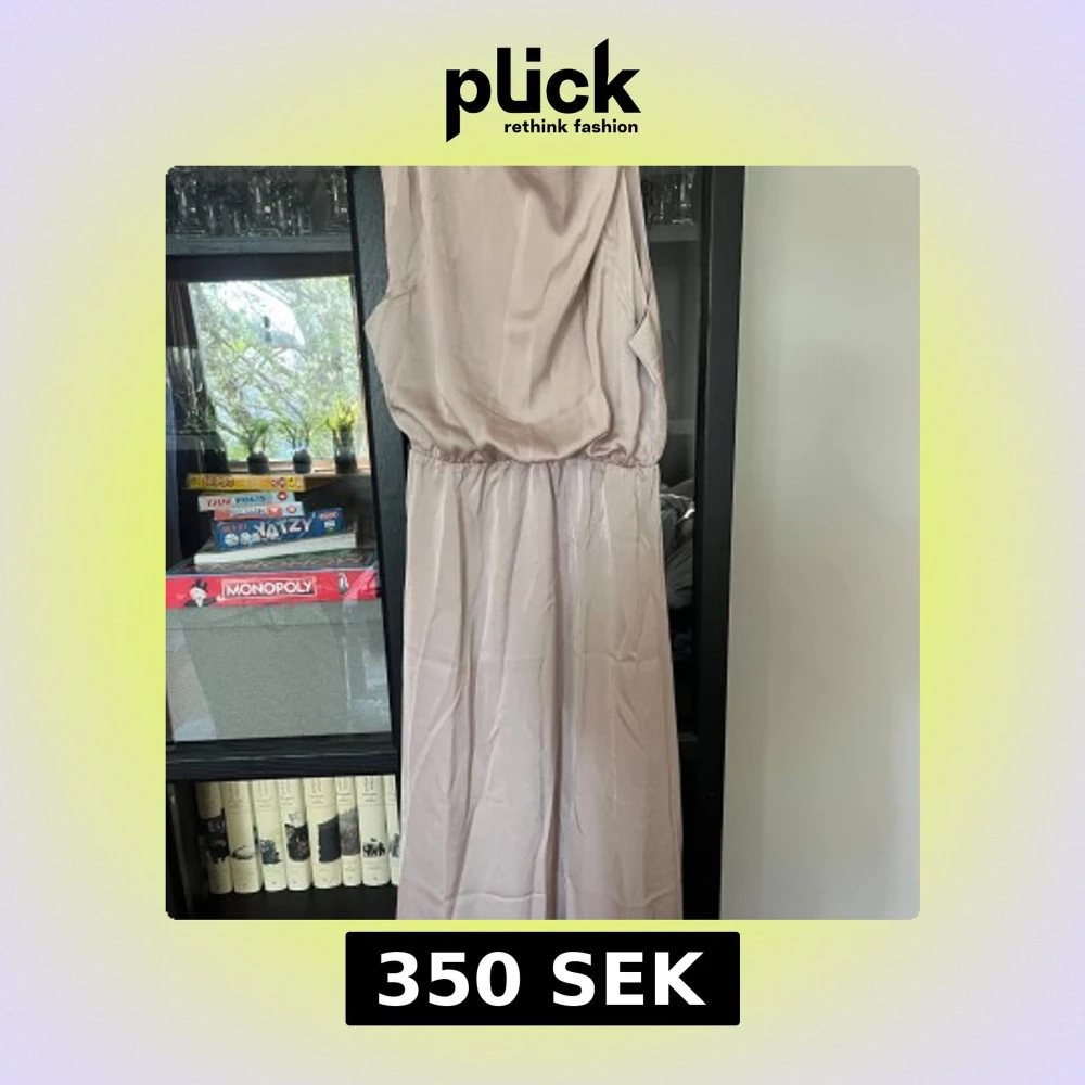 Säljer en elegant ljusbeige långklänning med hög hals och ärmlös design. Klänningen har en avslappnad passform med resår i midjan som ger en fin siluett. Perfekt för sommarens tillfällen.