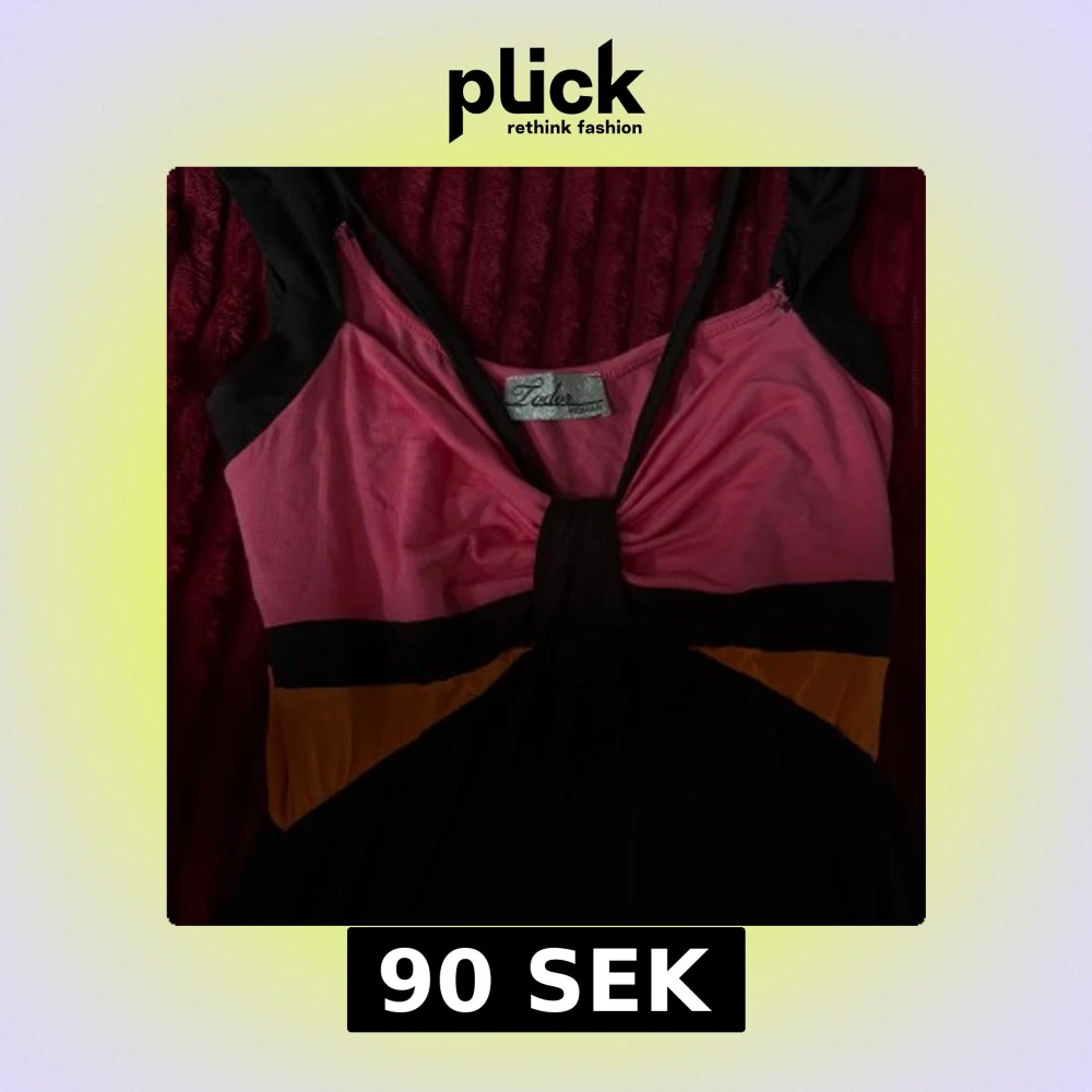 Snygg långklänning med breda axelband och omlott-detalj framtill. Klänningen har färgblock i rosa, svart och orange, vilket ger en cool vibe. Materialet känns mjukt och lätt, perfekt för varma dagar. Passformen är normal och klänningen har en flowy siluett.💖💖💖