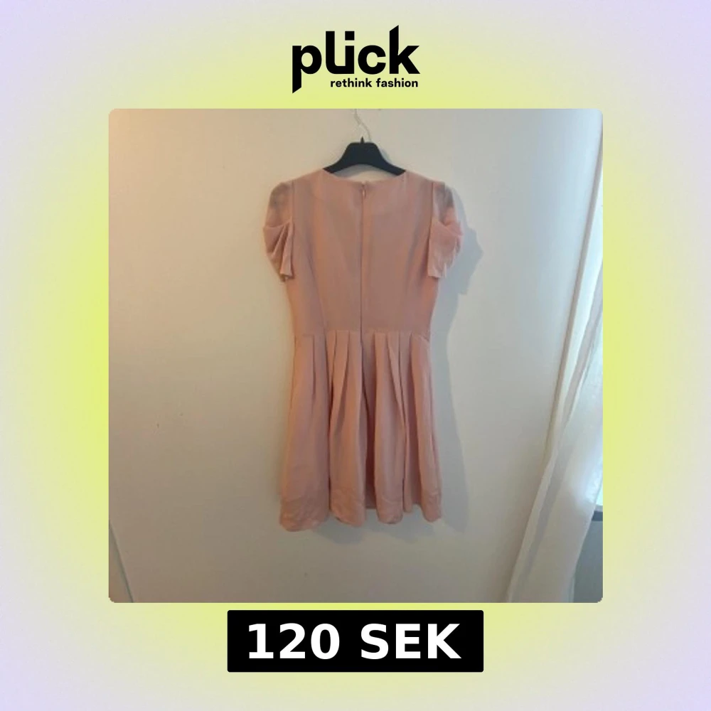 En rosa klänning, jag är 157 och klänningen går lite under mina knän. Jag har haft på mig den bara 1 gång den är typ beige rosa mer rosa än beige.