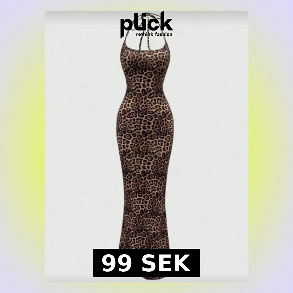 Snygg långklänning med leopardmönster och smala axelband som knyts i nacken. Klänningen har en figurnära passform och är perfekt för dig som vill sticka ut. Materialet är mjukt och följsamt.