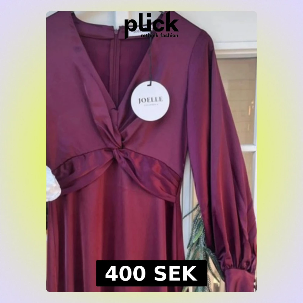 Säljer en vinröd långklänning från Joelle med snygg twistad detalj framtill och v-ringning. Klänningen har långa ärmar med puff och knappar vid ärmslut. Materialet är glansigt och känns lyxigt, perfekt för dig som vill sticka ut.