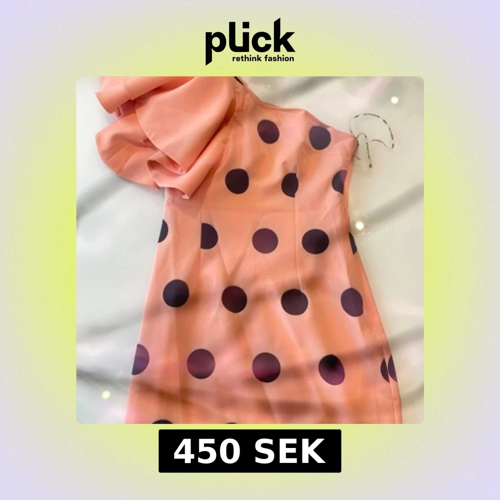Supersöt rosa klänning från Bonophard med stora svarta prickar och en unik volangdetalj vid axeln. Klänningen har en axelbandslös design och är perfekt för dig som vill sticka ut med ett lekfullt mönster och trendig look.