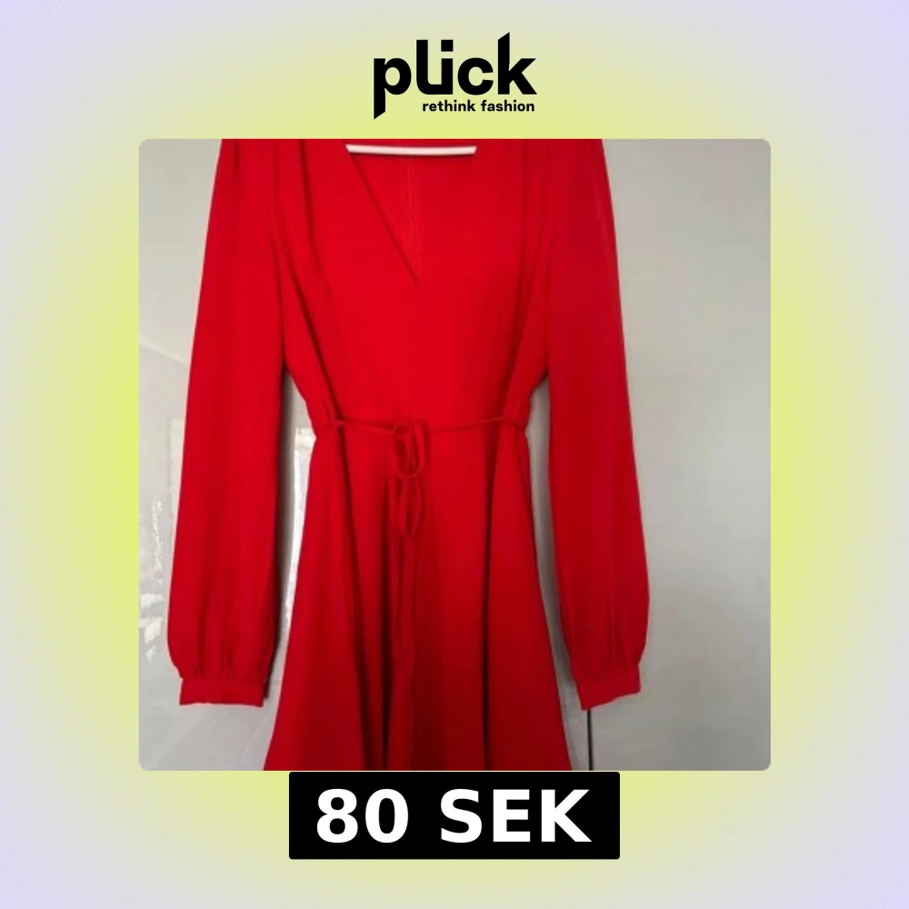 Snygg röd klänning från Glamorous i storlek 36. Klänningen har långa ärmar, v-ringad hals och ett knytband i midjan som ger en schysst siluett. Perfekt för dig som gillar färgstarka plagg med enkel design.