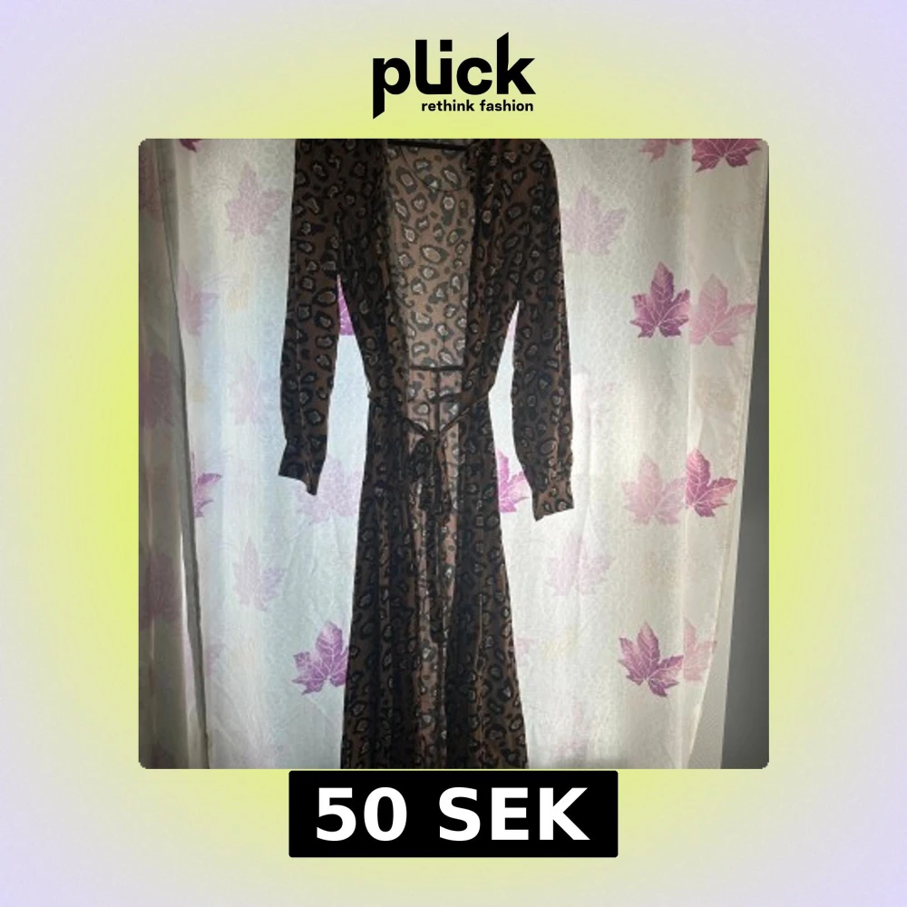 Säljer en långklänning med snyggt leopardmönster i bruna och svarta toner. Klänningen har långa ärmar och ett knytband i midjan som ger en schysst siluett. Perfekt för dig som vill sticka ut lite extra med ett djurmönster.