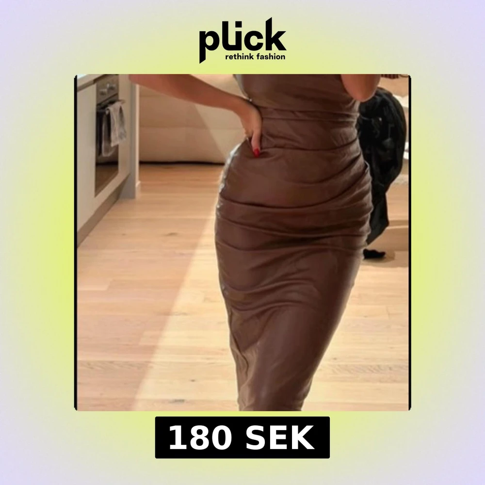 Säljer en snygg brun klänning med smala axelband och draperad effekt. Klänningen är figurnära och har en elegant, kroppsnära passform som framhäver siluetten. Perfekt för dig som vill sticka ut med en stilren look.