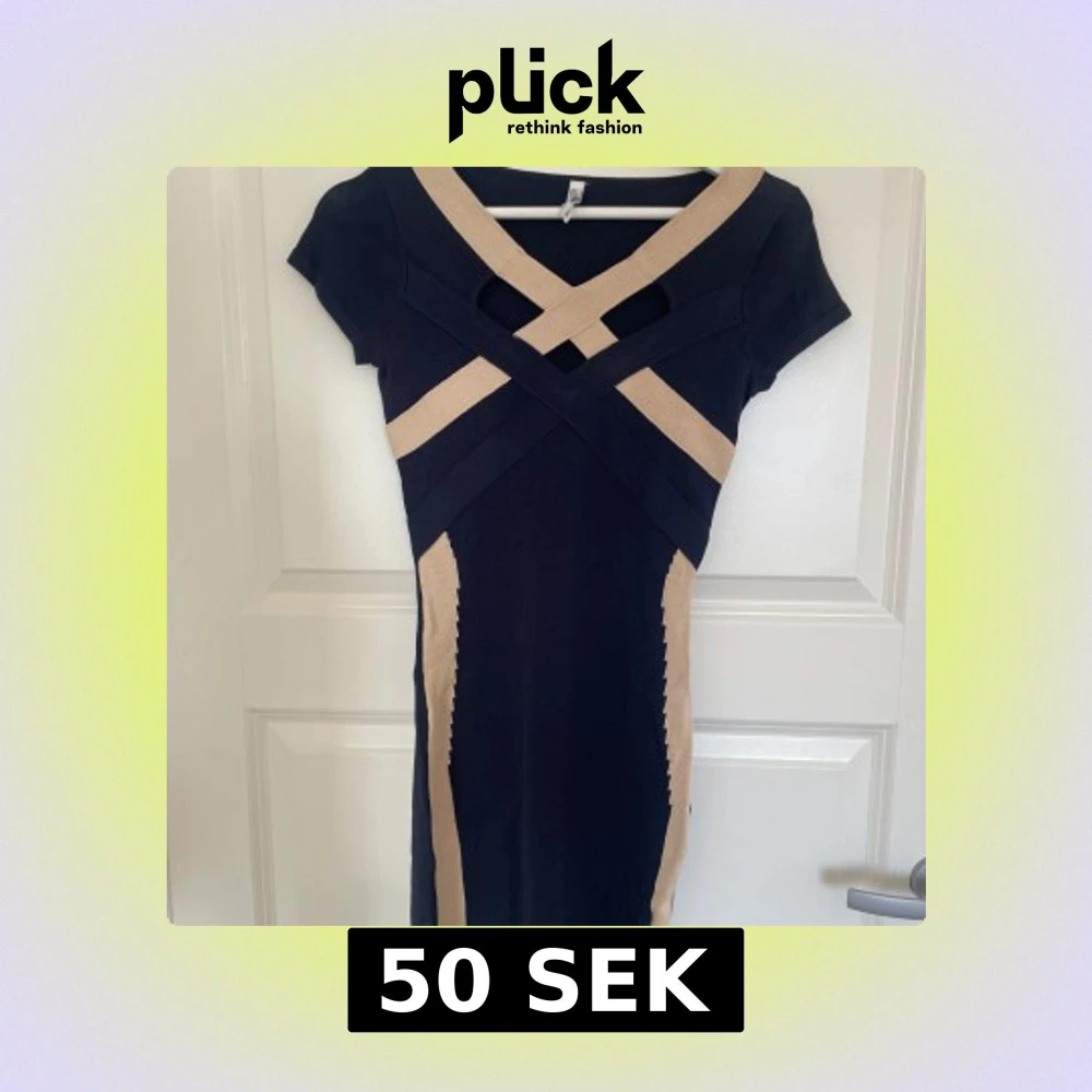 Snygg svart kortklänning med beigea detaljer från Chiara Forti Milano. Klänningen har korta ärmar och ett unikt korsat mönster framtill som ger en cool look. Figurnära passform och stretchigt material som framhäver siluetten.