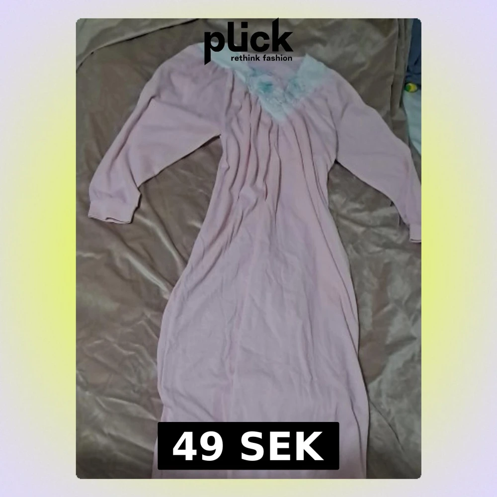 Pyjamas Söt ljusrosa långklänning med lång ärm och v-ringad hals. Dekorerad med vit spets och broderade blommor i blått och grönt vid halsen. Mjuk och flowy känsla, perfekt för dig som gillar romantiska detaljer.