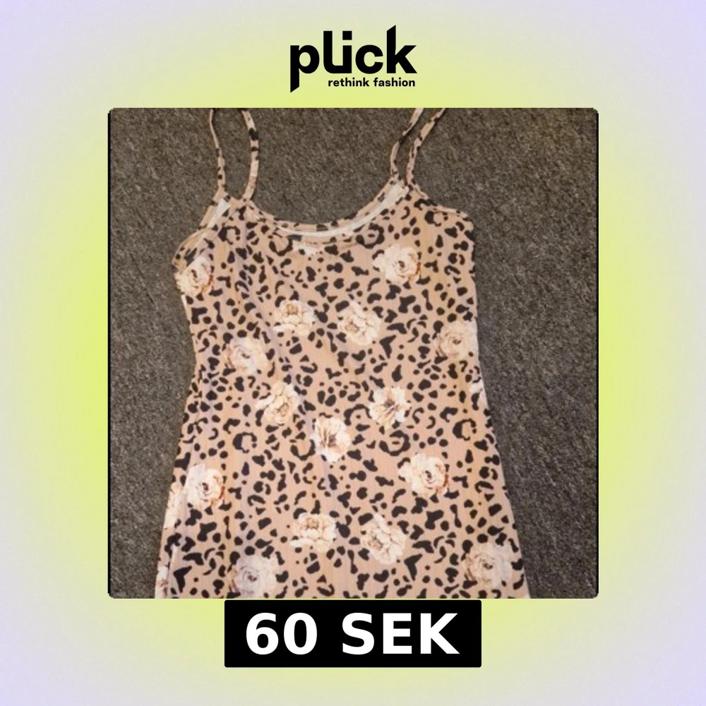 Säljer en beige kortklänning med leopardmönster och stora blommor i vitt och ljusrosa. Klänningen har smala axelband och är ärmlös, med en rak och slim passform. Perfekt för dig som gillar att sticka ut med coola mönster och mjuka färger.
