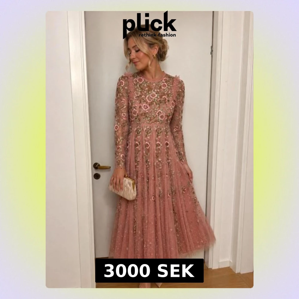 Drömmig rosa långklänning med blommigt broderi och spetsdetaljer. Klänningen har lång ärm, hög hals och är gjord i ett tunt, transparent material med volangdetaljer. Perfekt för speciella tillfällen där du vill sticka ut.Nypris 10 000kr