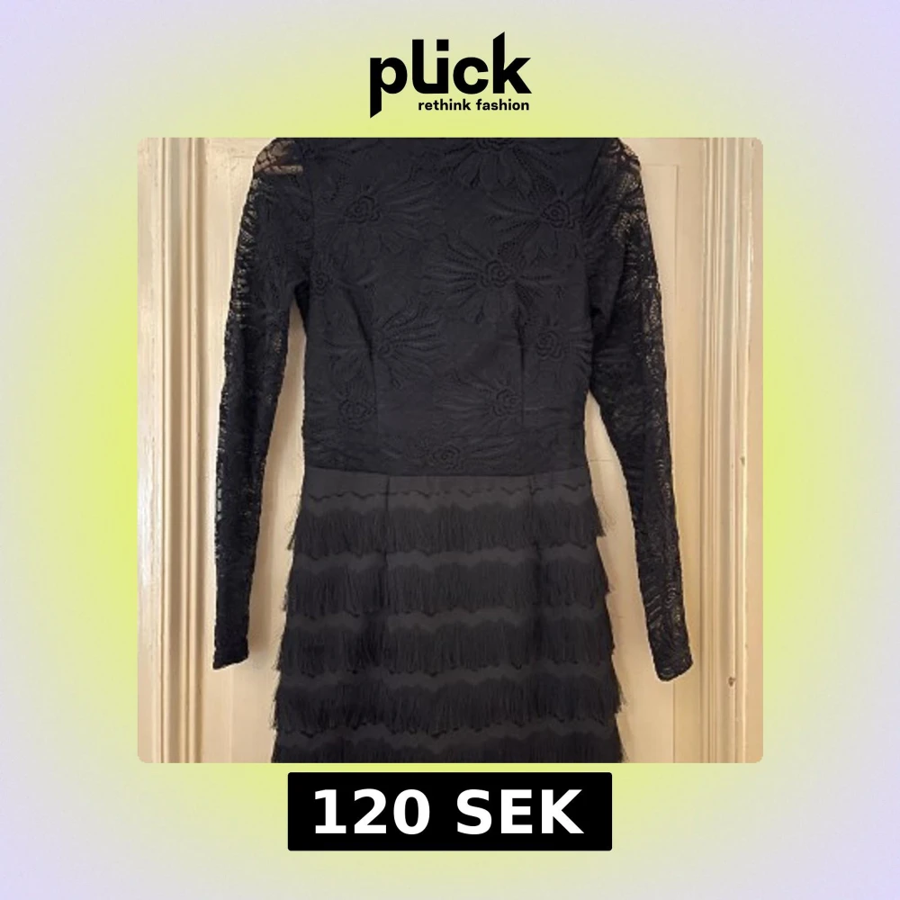 Svart långärmad spetsklänning med fransar