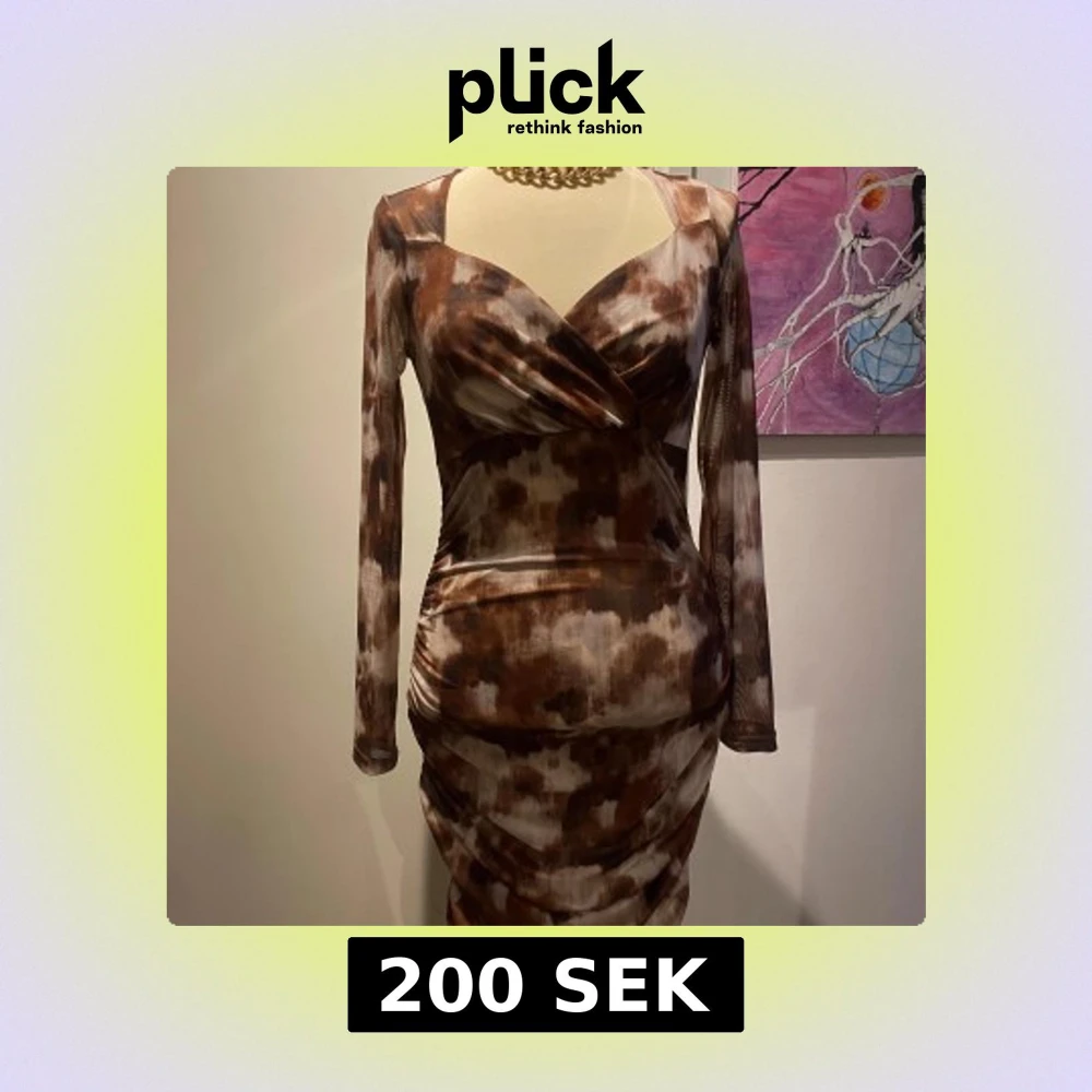 Snygg brun och beige klänning med långa ärmar. Klänningen har ett unikt mönster och en figurnära passform som framhäver siluetten. Priserna går att diskutera!!