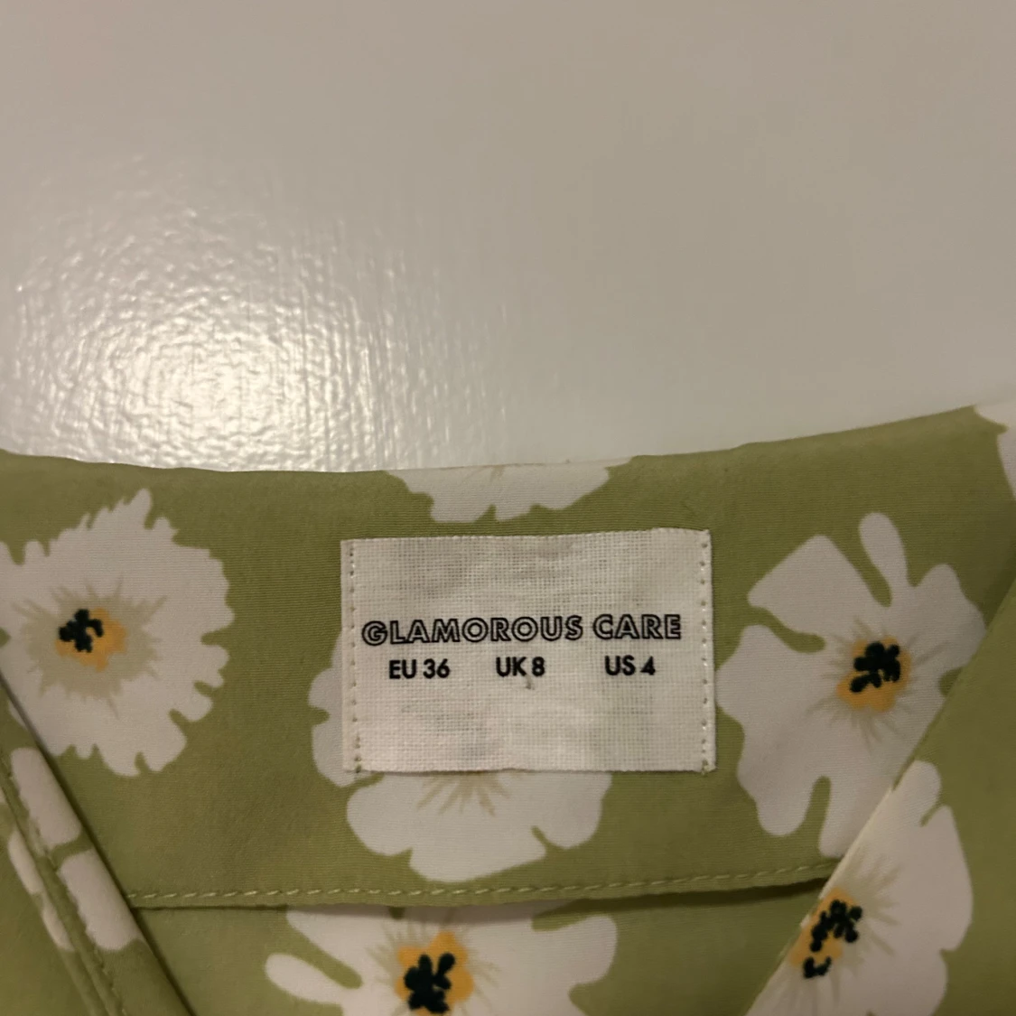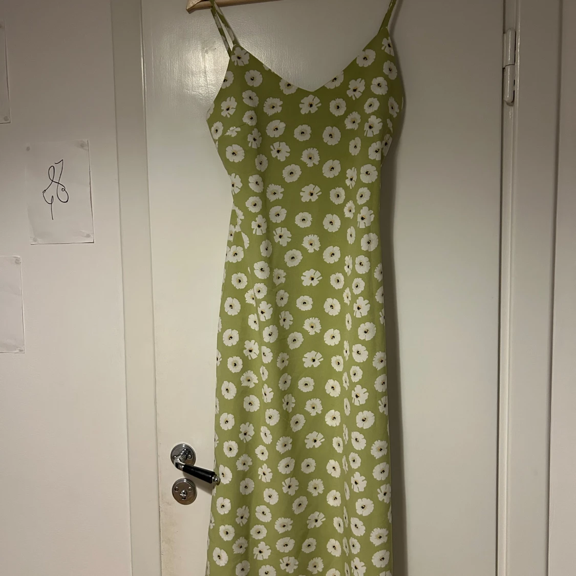 Säljer en söt grön klänning med vita blommor från Glamorous Care. Klänningen har smala axelband och en lång, elegant passform!