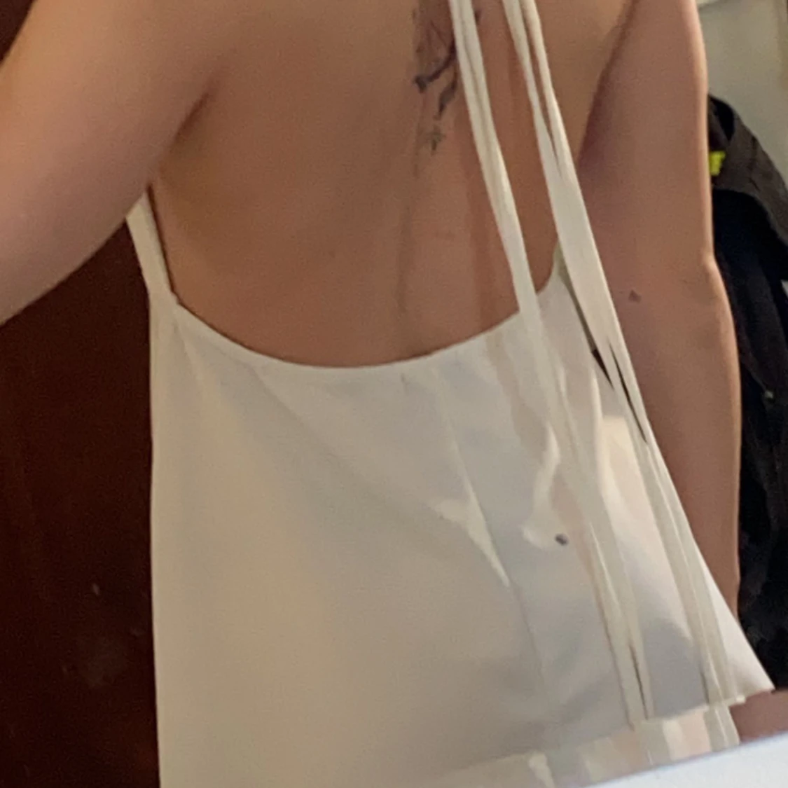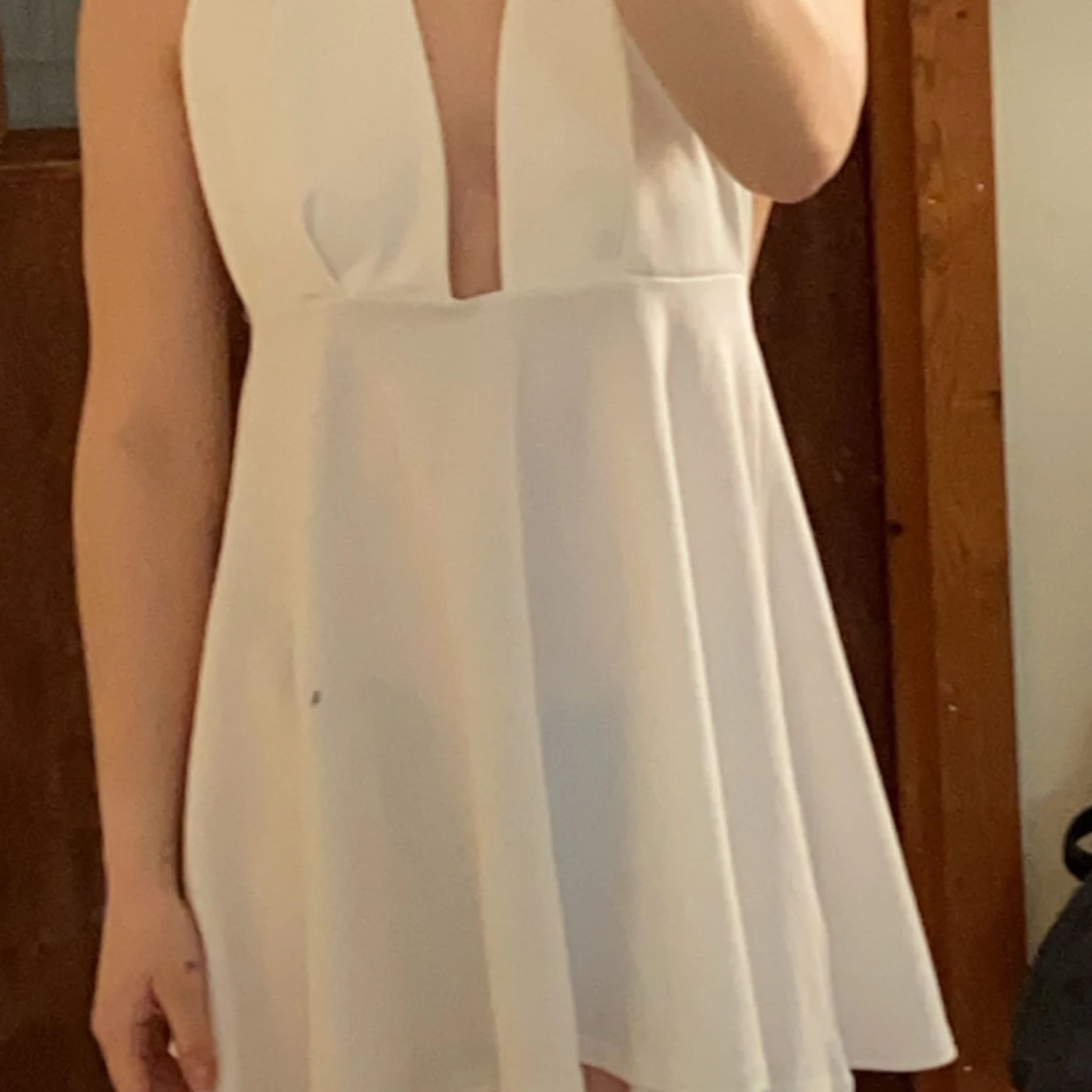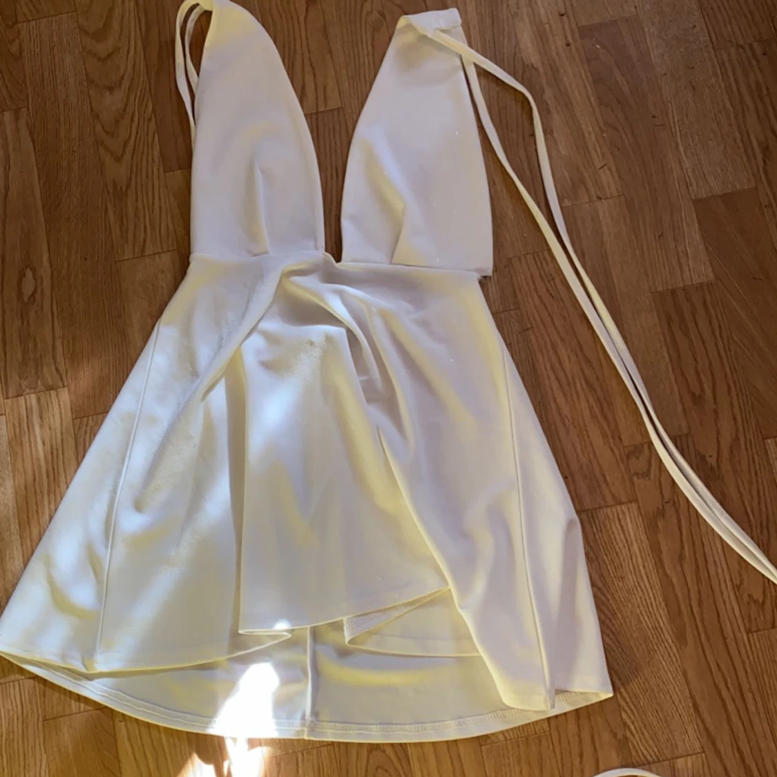 Vit halterneck klänning med snörning! Från pretty little thing! Gått upp ca 2 cm i en söm vid midjan!
