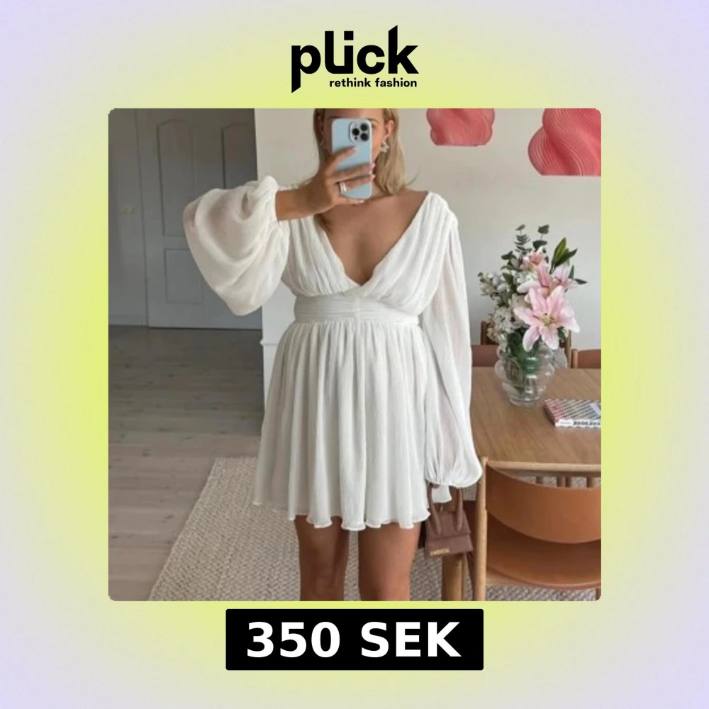 Super fin vit klänning från lojsan x nakd. Använd en gång men köpt på Vinted så förra ägaren kan ha använt den. Jag tycker den är i väldigt fint skick fortfarande i alla fall! Finns ett spänne i urringningen så det går att bestämma hur djup man vill att den ska vara☺️